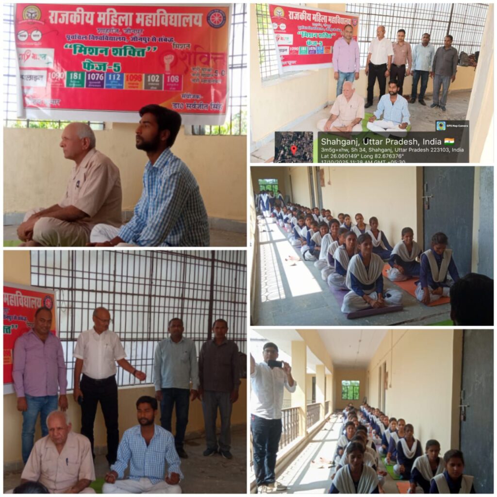 मिशन शक्ति फेज-5 के अंतर्गत शुक्रवार को राजकीय महिला महाविद्यालय शाहगंज में एक दिवसीय “योग कार्यक्रम” का भव्य आयोजन किया गया। कार्यक्रम का संचालन महाविद्यालय के प्राचार्य प्रो. संजय कुमार के निर्देशन में किया गया, जिसका उद्देश्य छात्राओं में शारीरिक, मानसिक एवं आत्मिक स्वास्थ्य के प्रति जागरूकता बढ़ाना रहा।
