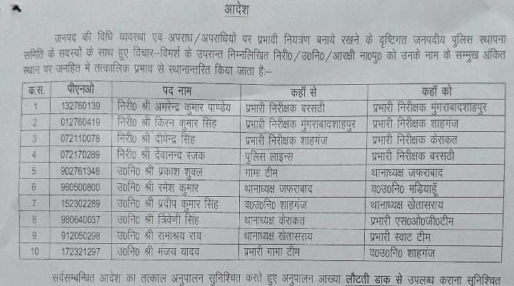 शाहगंज सहित कई थानाध्यक्ष बदले,शाहगंज के नये कोतवाल किरन कुमार सिंह – शाहगंज जौनपुर Purvanchal 24×7 News